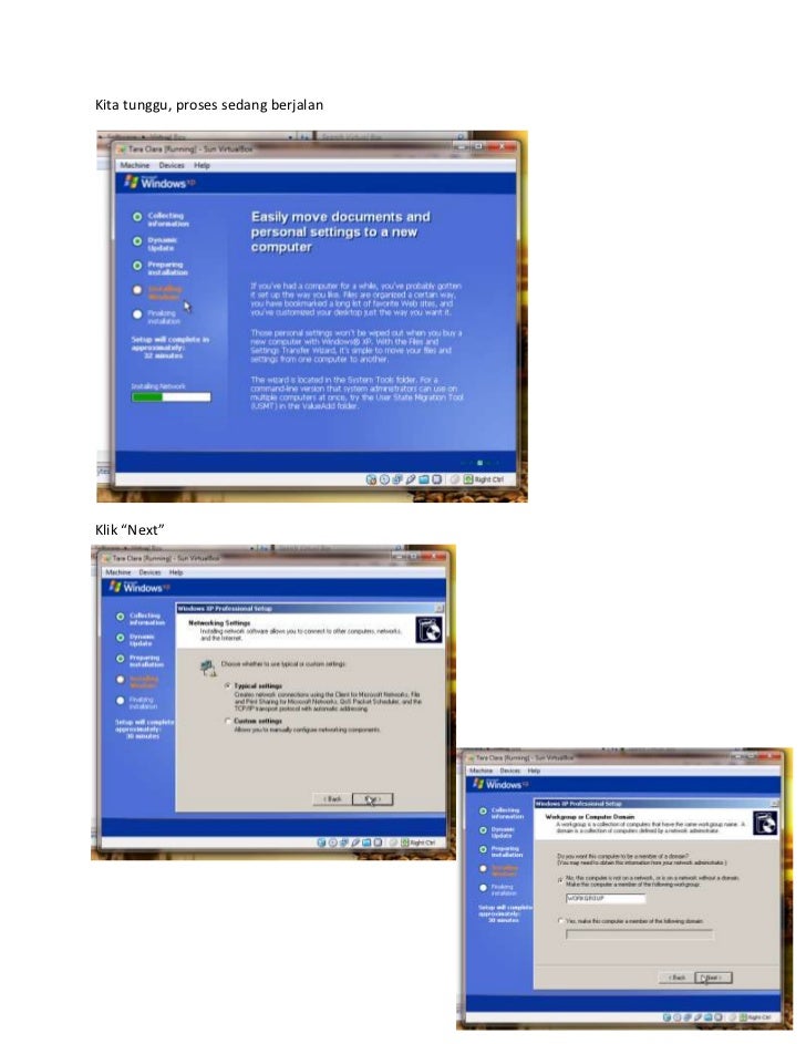 - Menginstal sebuah Operating System pada sebuah komputer tidaklah sesulit yang kitabayangkan. Nah untuk lebih mudahnya marilah kita praktekkan menginstal Operating Systemdengan menggunakan software Virtual Box. Adapun langkah-langkah penginstal-annya sebagaiberikut : Tampilan ketika akan menginstal virtual Box. Kita klik tombol “Next” Ini merupakan lembar persetujuan. Kita pilih yang “ I accept … “ lalu kita klik tombol “Next”